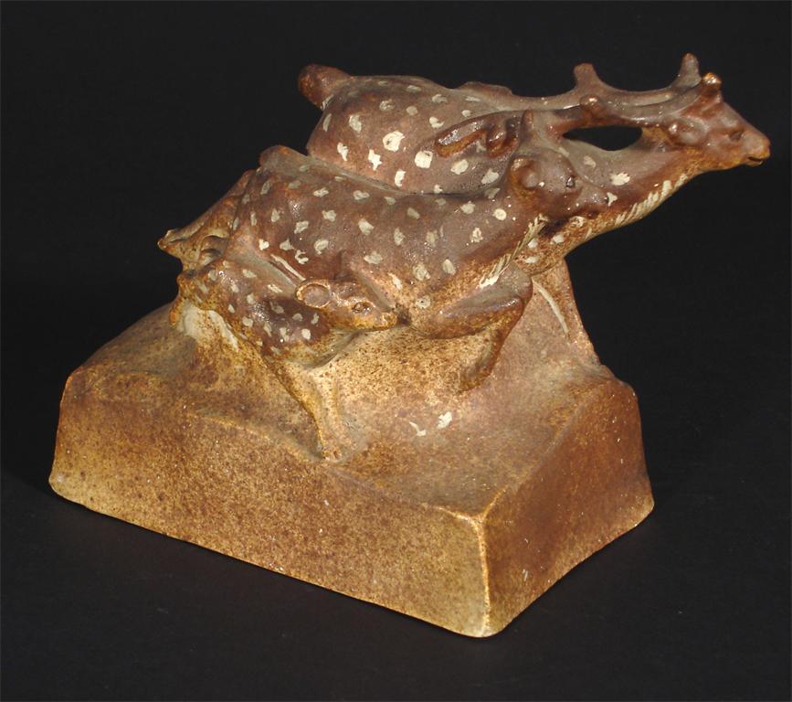 A Stella Crofts stoneware deer family group dated 1928