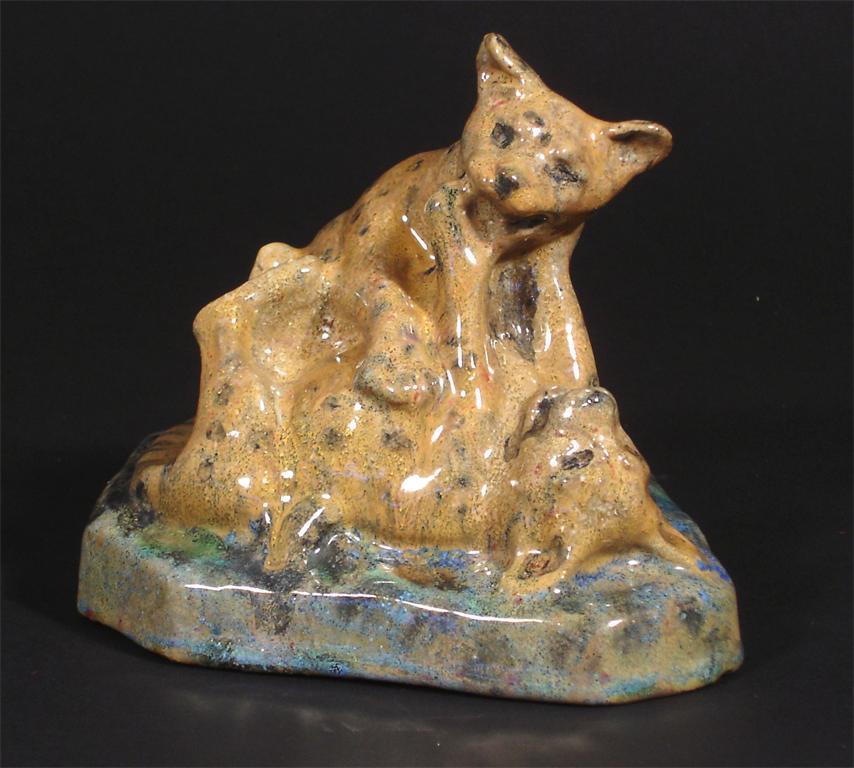 'Lion Cubs' a Stella Crofts pottery figure group dated 1928