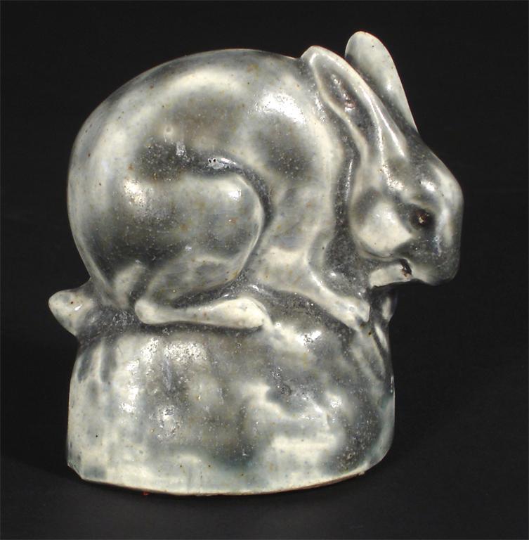 A Stella Crofts stoneware rabbit figure dated 1933, covered in a grey glaze incised Stella R Crofts 1933 8.5cm. high