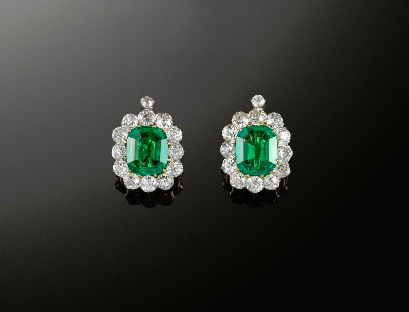 Accompanied by report number CS 84713 A and B dated 3rd June 2015 from American Gemological Laboratories, New York stating that the cushion-shaped step cut emeralds measure approximately 12.72 x 10.68 x 5.66mm and 12.60 x 1073 x 5.42mm and are natural emeralds with minor clarity enhancement. Origin: Colombia.