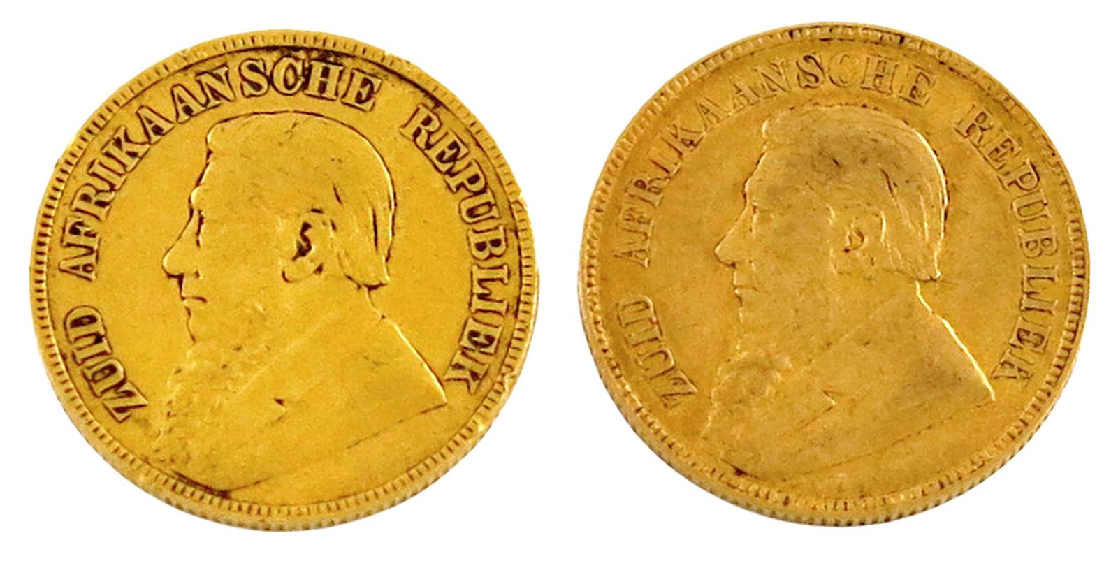 South Africa [ZAR], Paul Kruger, gold Ponds (2), 1897. Fine to very fine. (2)