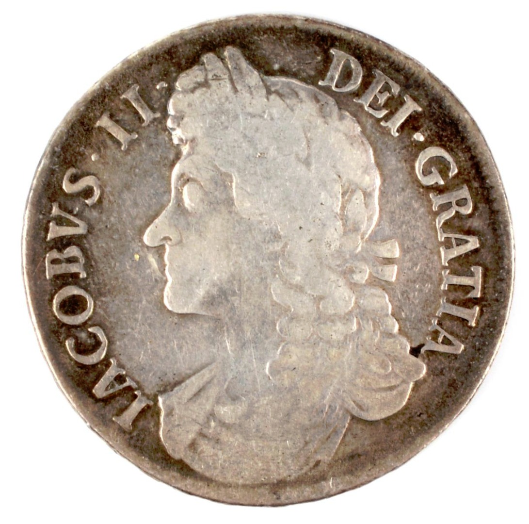James II, Silver Crown, 1687, second bust, edge TERTIO (S 3407). Near fine.