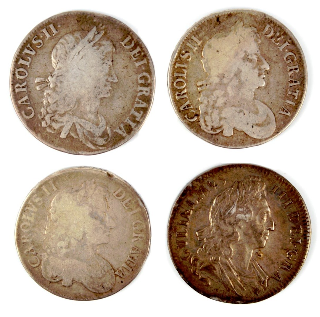 Crowns (4), Charles II, 1663, 1673 (edge QUINTO), 1677, William III, 1695 (S 3354, 3358, 3470).The first three fair or better, the fourth good very fine. [4]