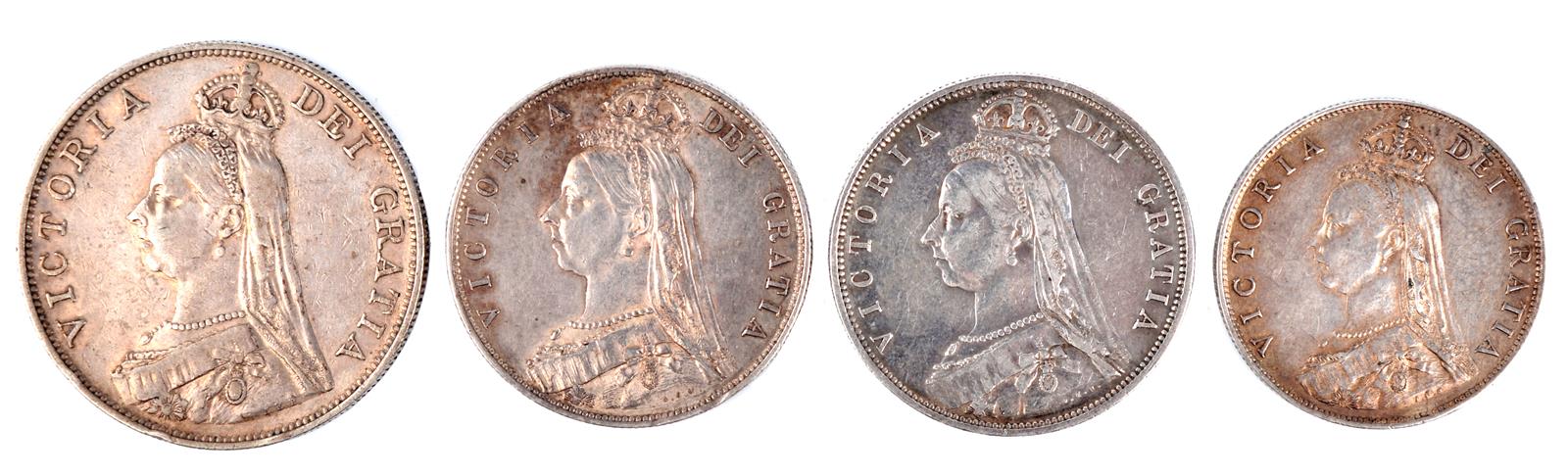 Victoria, Silver Double-Florin, 1887, Arabic 1; Halfcrowns (2), 1887; Florin, 1887 (S 3923; 3924; 3925). The first two and the last good fine or better, one Halfcrown nearly extremely fine. [4]