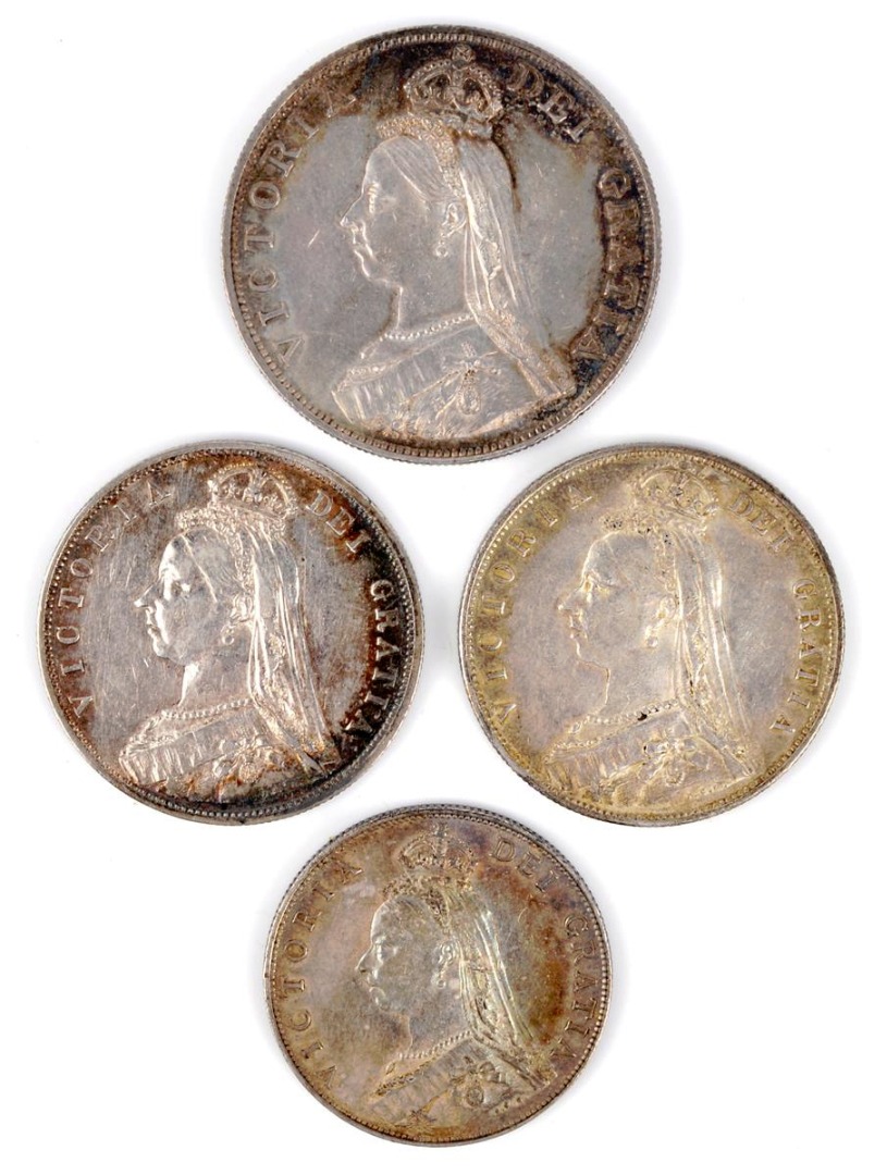 Victoria, Silver coins: Double Florin, Halfcrowns (2), Florin, all 1887 (S 3921, 3924, 3925). All about extremely fine. [4]