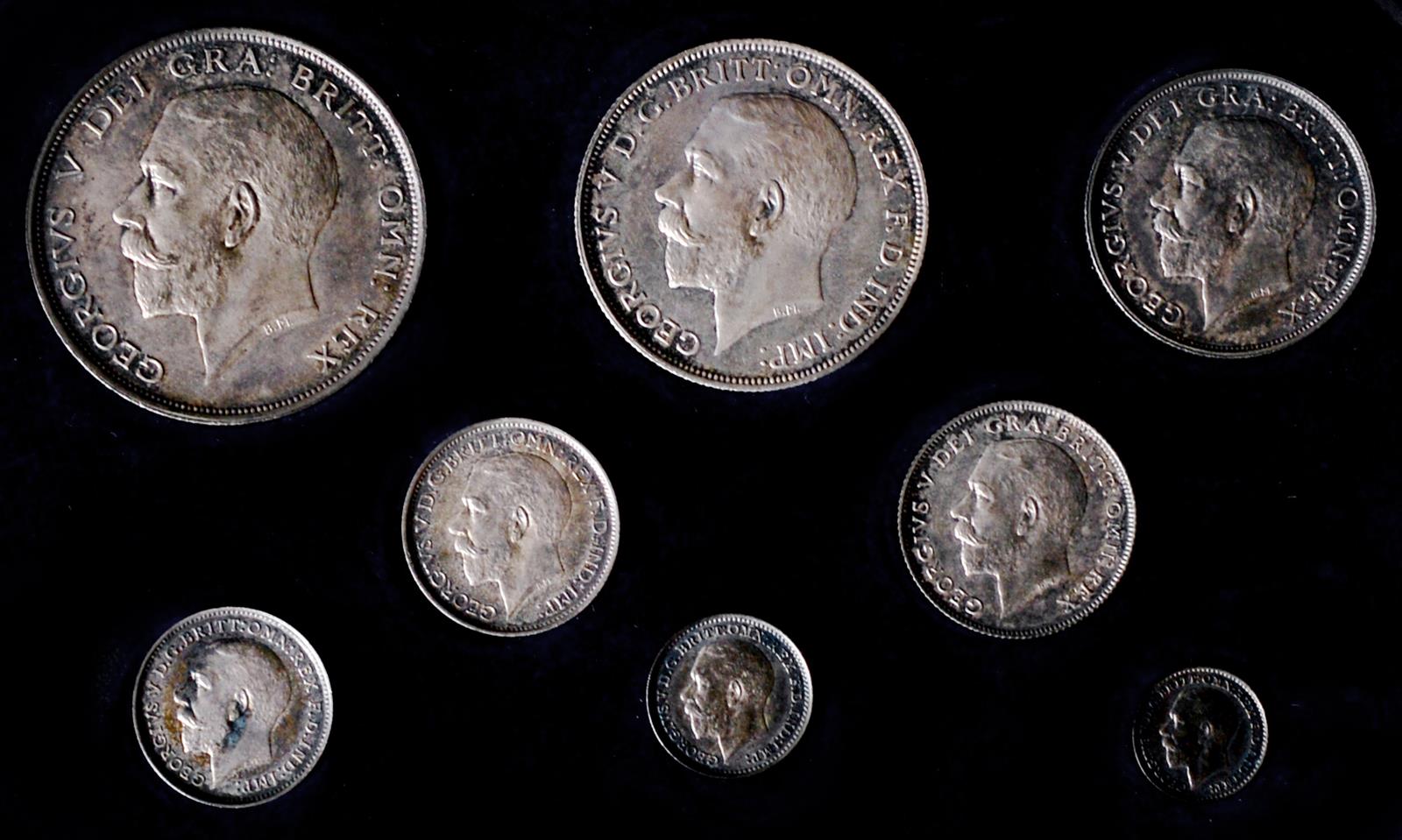 Proof George V set, 1911, Halfcrown to Maundy Penny (8), in official red case of issue (S PS13). Attractively toned, with some very light scratching to some coins, mainly to obverses, otherwise about as struck.