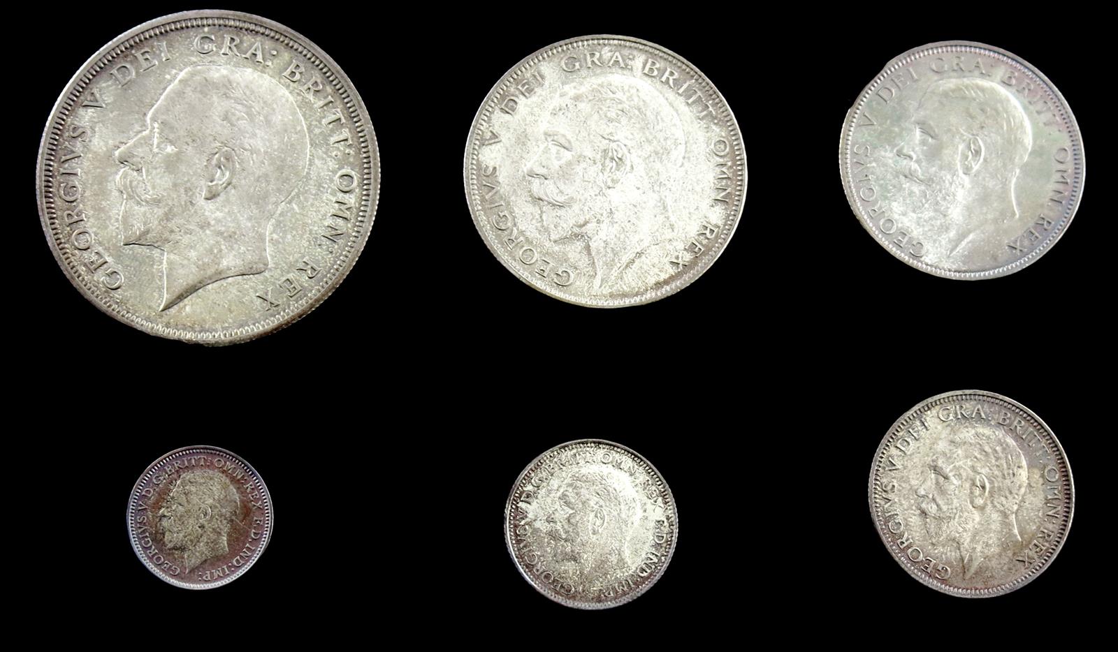 George V, Proof Set of Coins, 1927, silver Crown to Threepence, bare head left, various reverses (S.PS14), in original leather case of issue. Light tone, virtually mint state. (6)