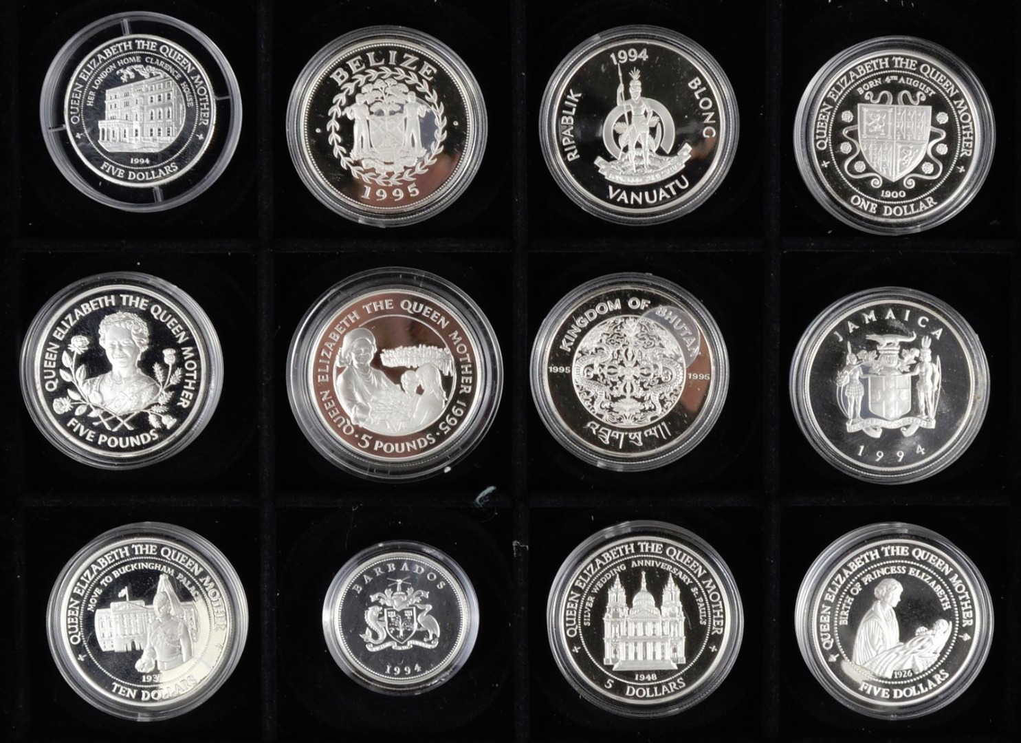 H.M. Queen Elizabeth the Queen Mother, a set of 12 proof coins, mainly crown sized, various Dominions, 1994-1995, in fitted case.