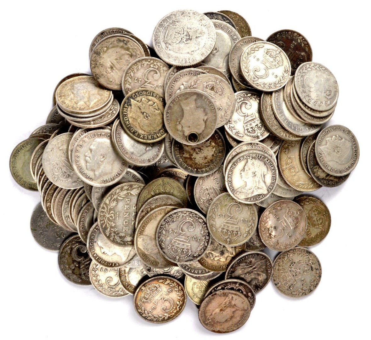A collection of small denomination British coins, mainly threepences, various reigns and dates. Various grades from fair to near very fine. [Approximately 147]