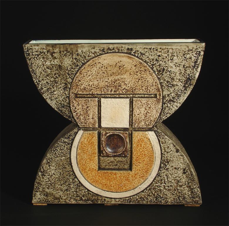 A Troika Pottery Anvil vase by Alison Brigden, modelled in low relief, in shades of brown painted marks AB artist mark 23cm. high