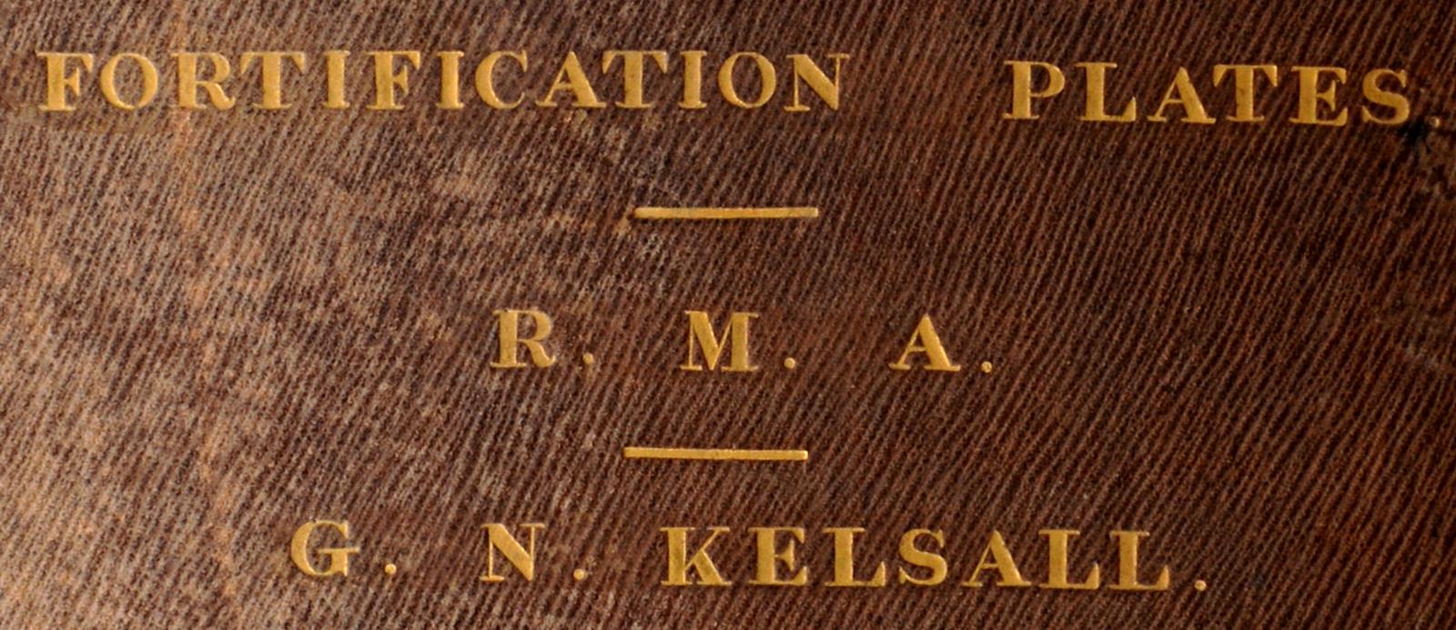 'Fortification Plates, R.M.A., G.M. Kelsall', a bound volume of diagrams illustrating the principals of 19th Century fortifications, produced at the Royal Military Academy Woolwich between 1850 and 1853 by the cadet named on the cover, commencing with basic geometric exercises and progressing to detailed plans of fortifications, including the doctrine for attacking them.