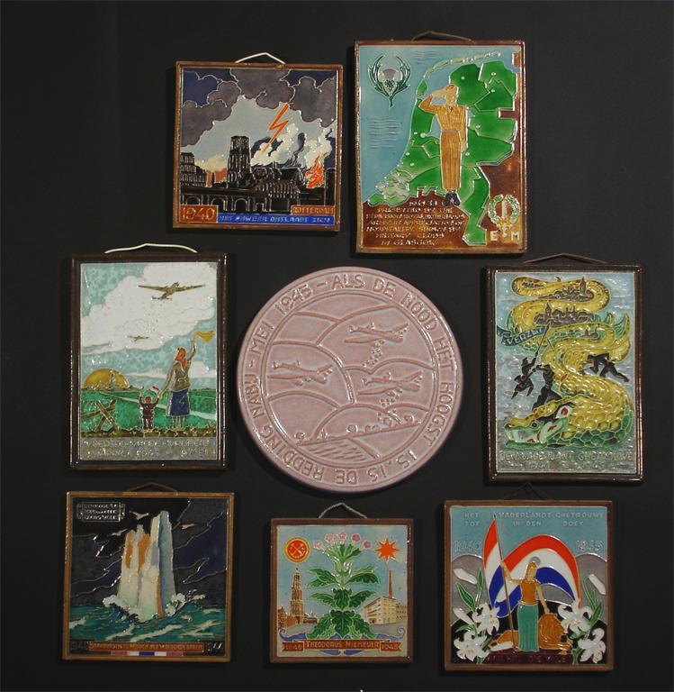 A collection of Dutch Delft tiles including Second World War related tiles impressed marks