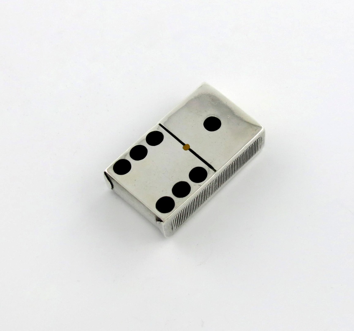 rectangular form, modelled as a domino, slide-out base, the sides with strikers, length 4.8cm, approx. weight 1oz.