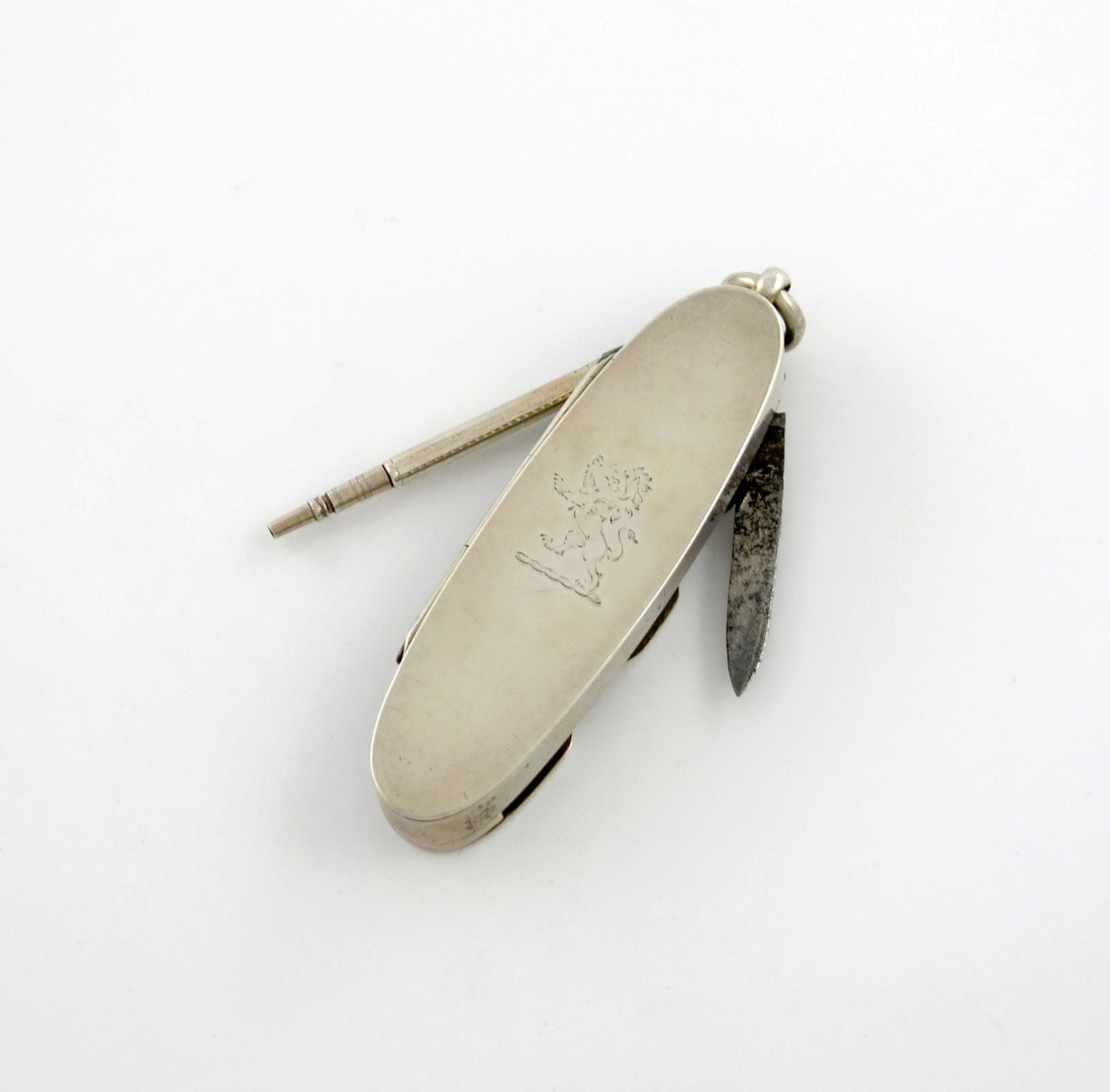 rounded rectangular form, the hinged cover with a crest, with a ring terminal, length 7cm, approx. weight 1.7oz.
