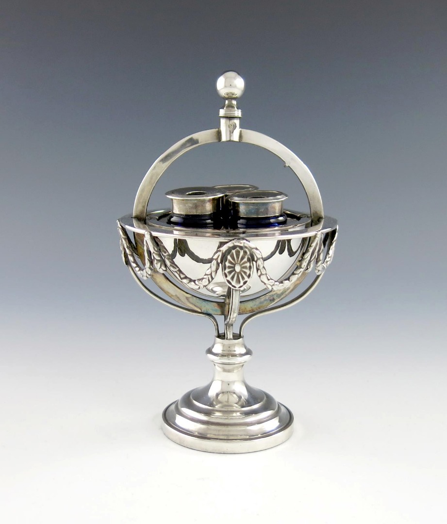 A George III old Sheffield plated globe inkwell,