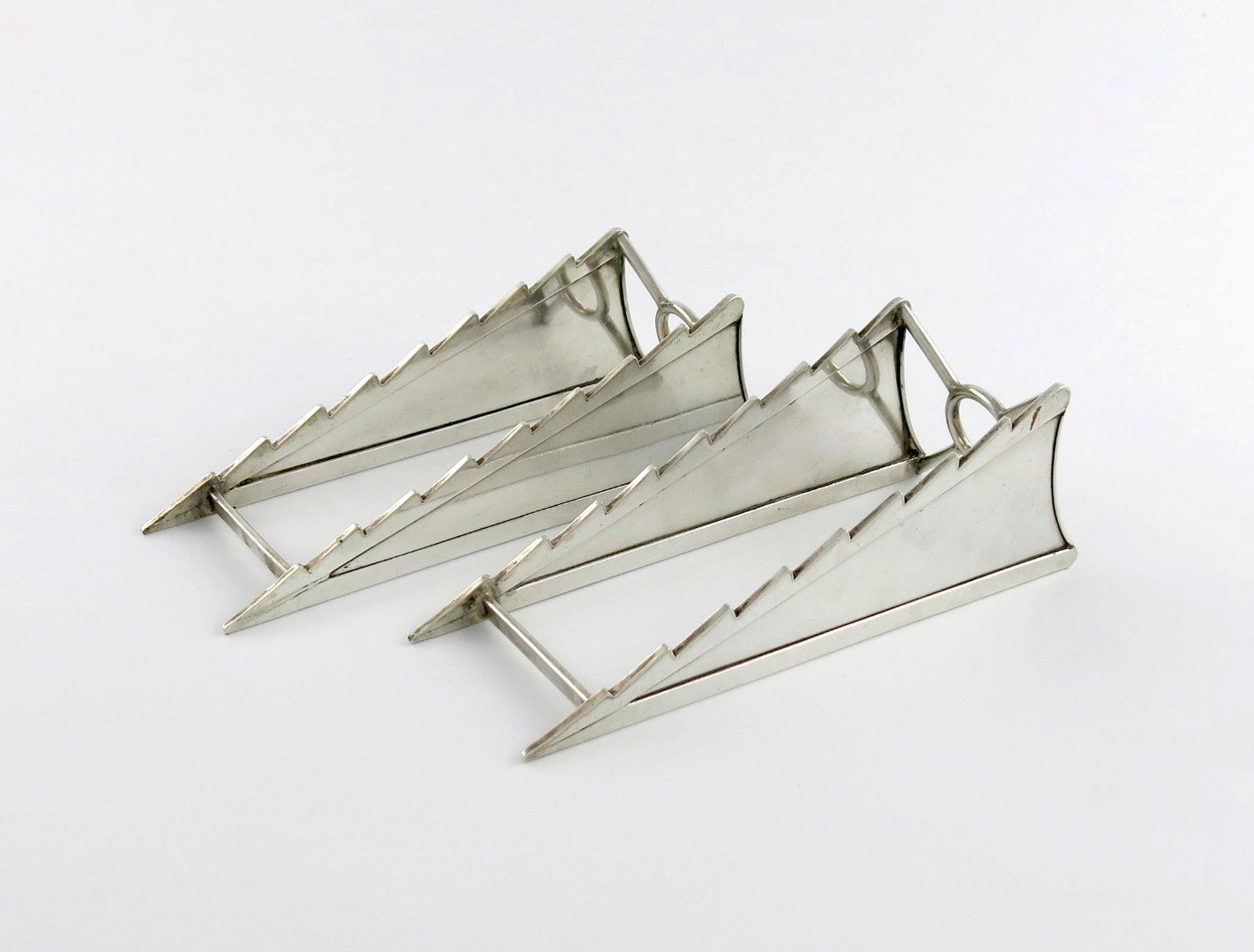 triangular wedge form, serrated edges, wire-work backs, length 17cm. (2)