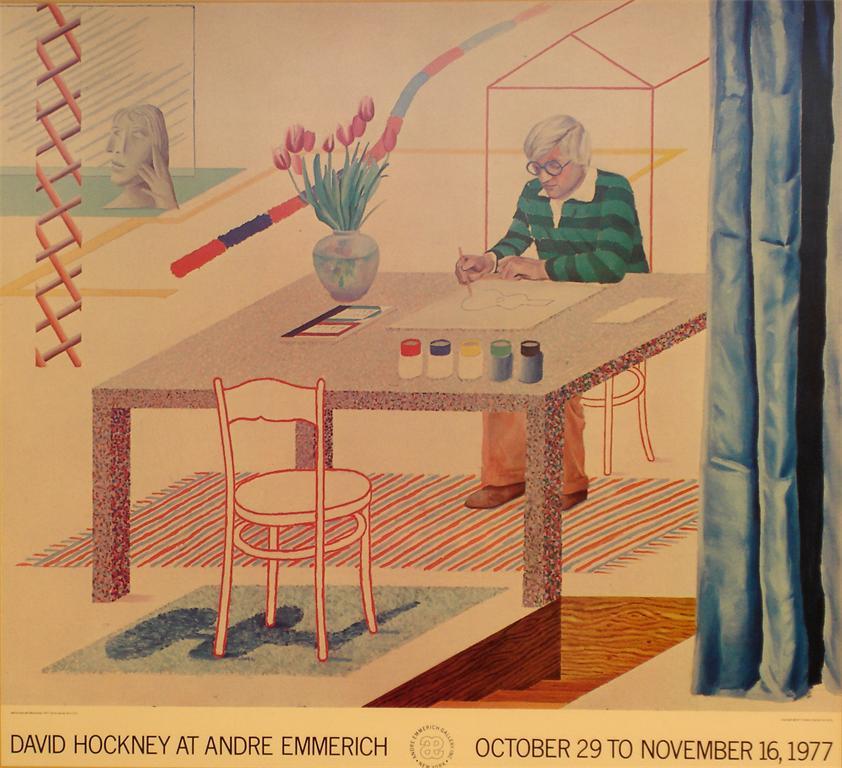 'Self Portrait with Blue Guitar - David Hockney at Andre Emmerich' a poster designed by David...