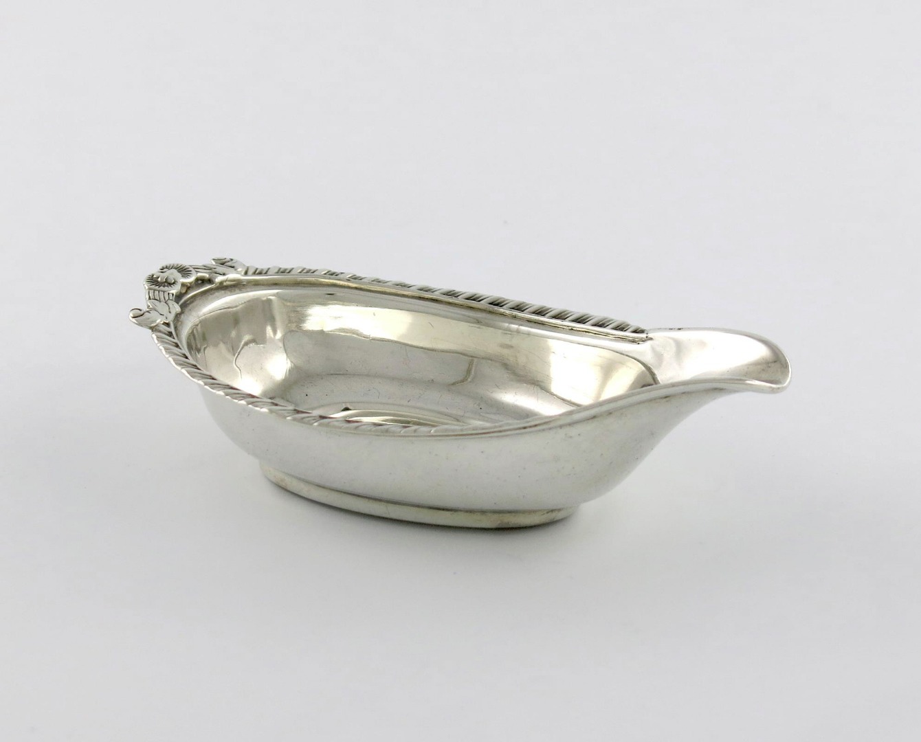 oval form, gadroon and foliate shell border, length 13.5cm, approx. weight 3.3oz.
