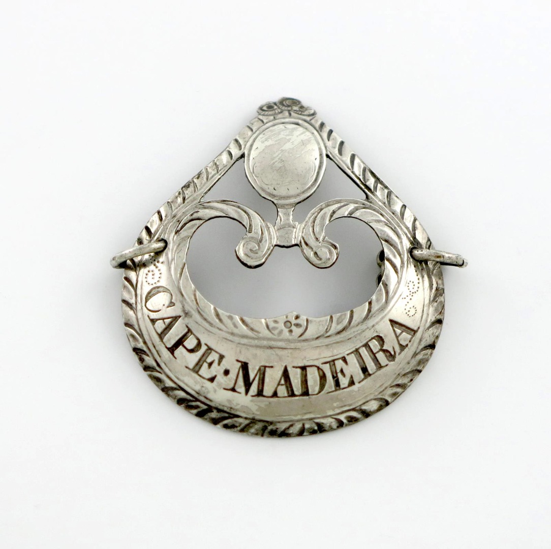 scroll form, with a raised pediment, feather-edge border, incised 'CAPE MADEIRA', length 4.5cm, approx. weight 0.3oz.
