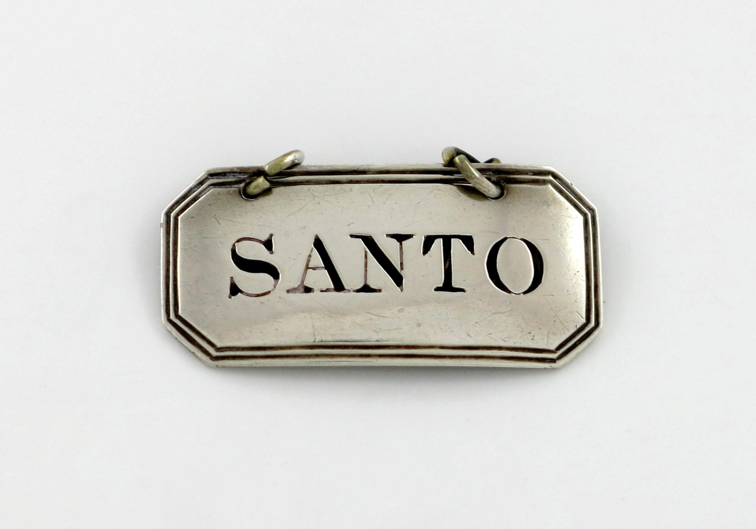 slender rectangular form, canted corners, pierced 'SANTO' length 3.8cm, approx. weight 0.2oz.