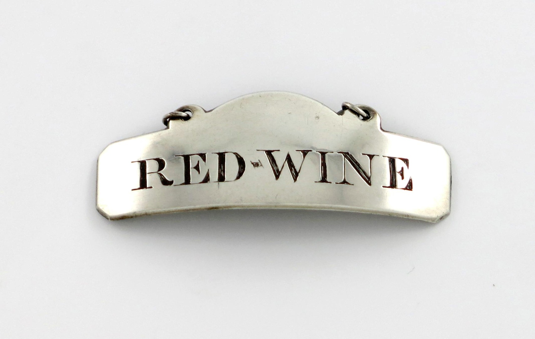 rectangular form with a pediment, incised and blackened 'RED. WINE', length 5.1cm, approx. weight 0.2oz.