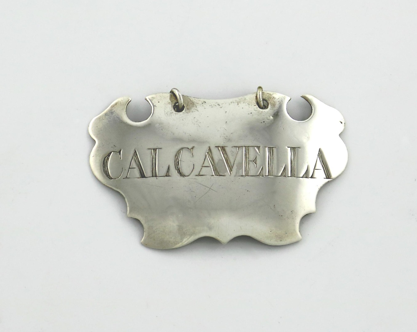 cartouche form, incised 'CALCAVELLA', length 5.3cm, approx. weight 0.4oz.