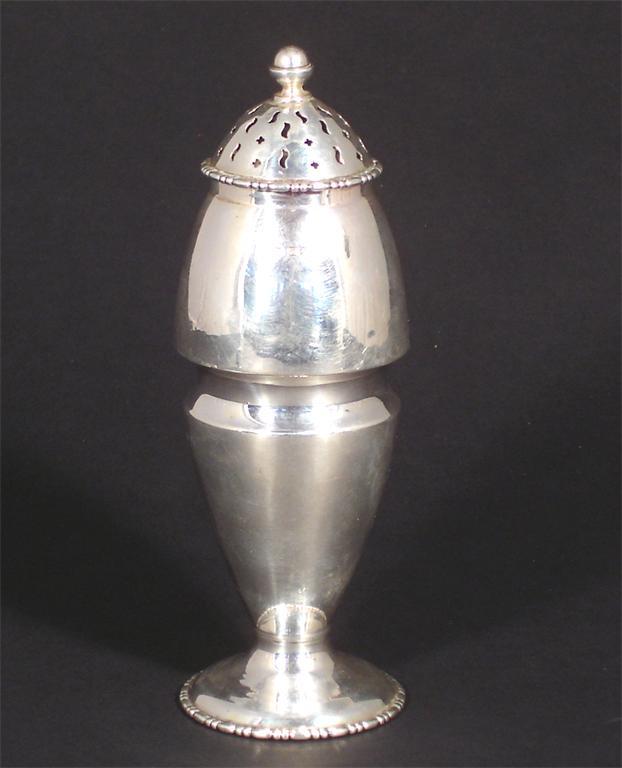 An English Silver sugar sifter, waisted bombe shape stamped marks, H W Sheffield 1915 16.5cm. high