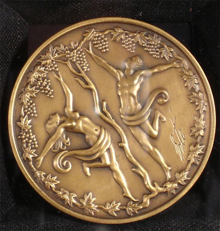 'The Celebration' and 'The Parrot' two modern bronze medals cast from a model by Erte (Romain de...