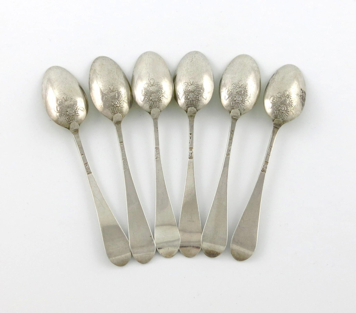 A set of six George III silver 'picture-back' Hanoverian pattern teaspoons