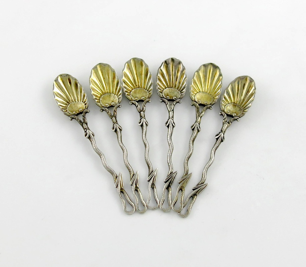 A set of six George III silver-gilt 'dragon-end' teaspoons