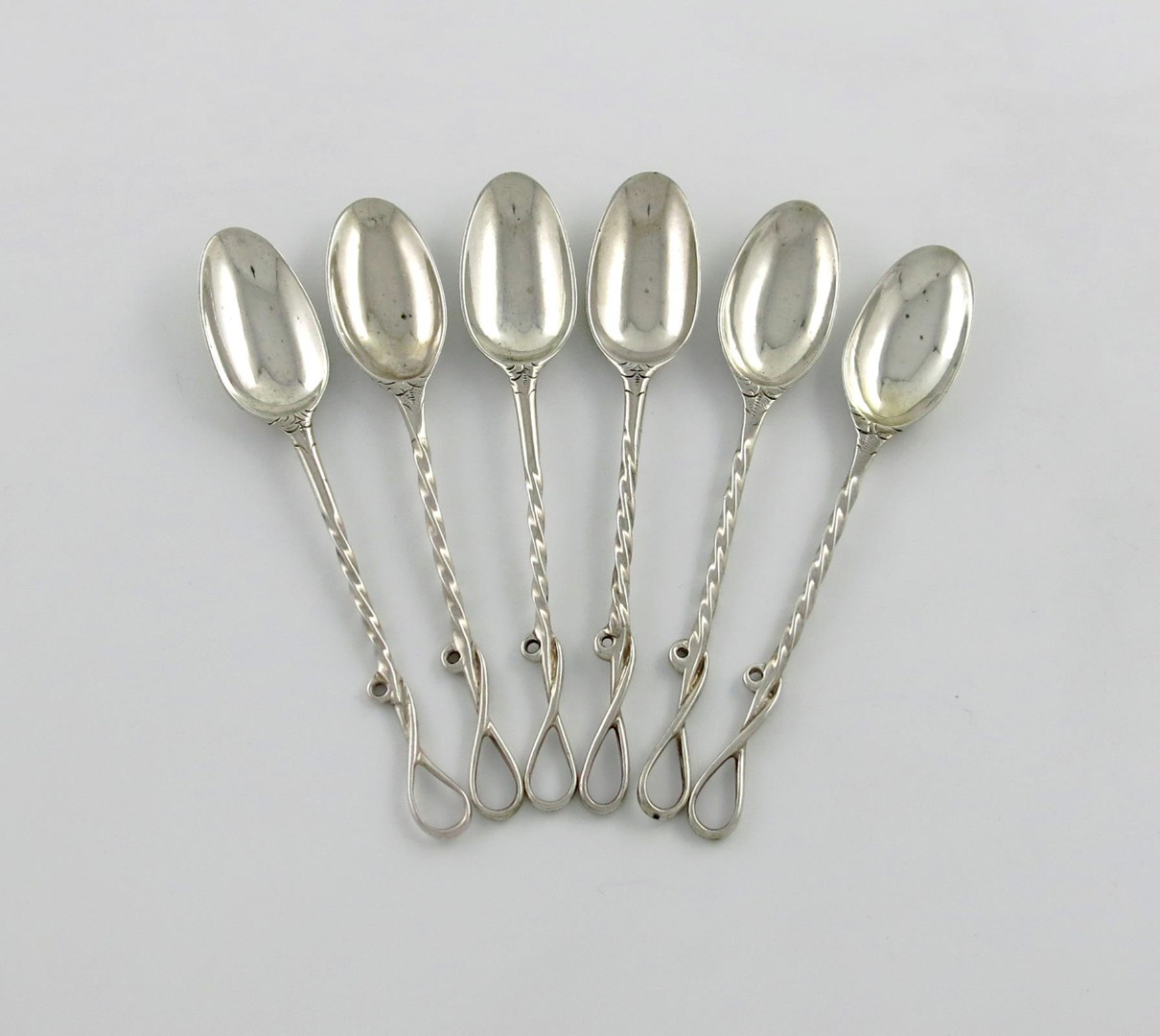 the reverse of the bowl shell motifs, the terminals with whip-ends, approx. weight 2.5oz. (6)