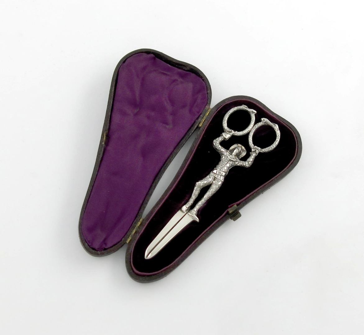 tapering blades, snake ring handles, in a fitted case, length 14.8cm, approx. weight 2.7oz.
