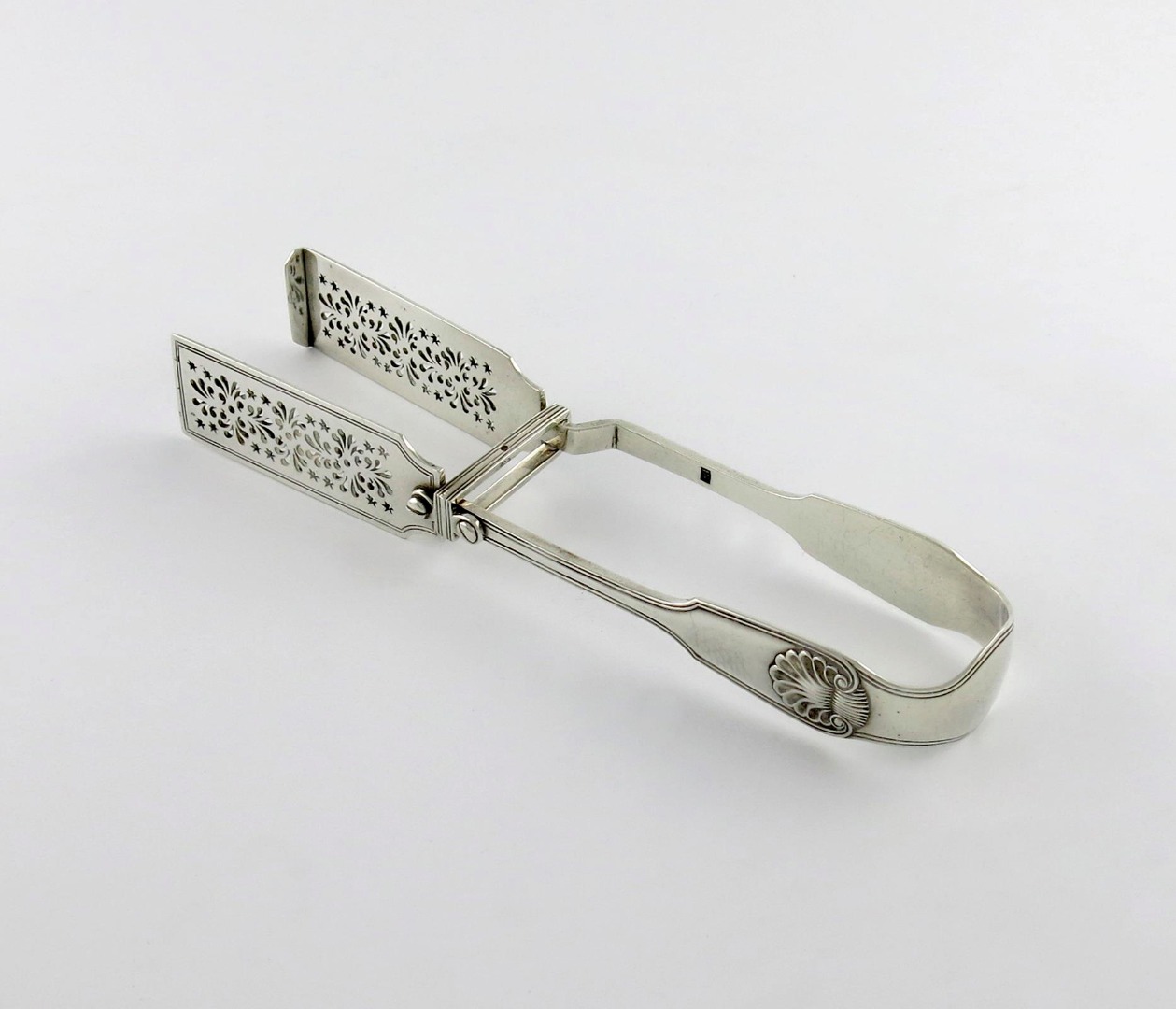A pair of Victorian silver Fiddle, Thread and Shell pattern asparagus tongs,