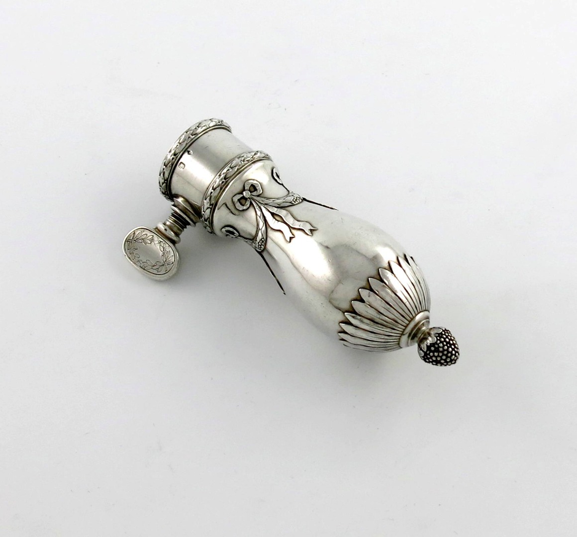 baluster handle, ribbon-tied and fluted decoration with a cone finial, length 12.7cm, approx. weight 9oz.
