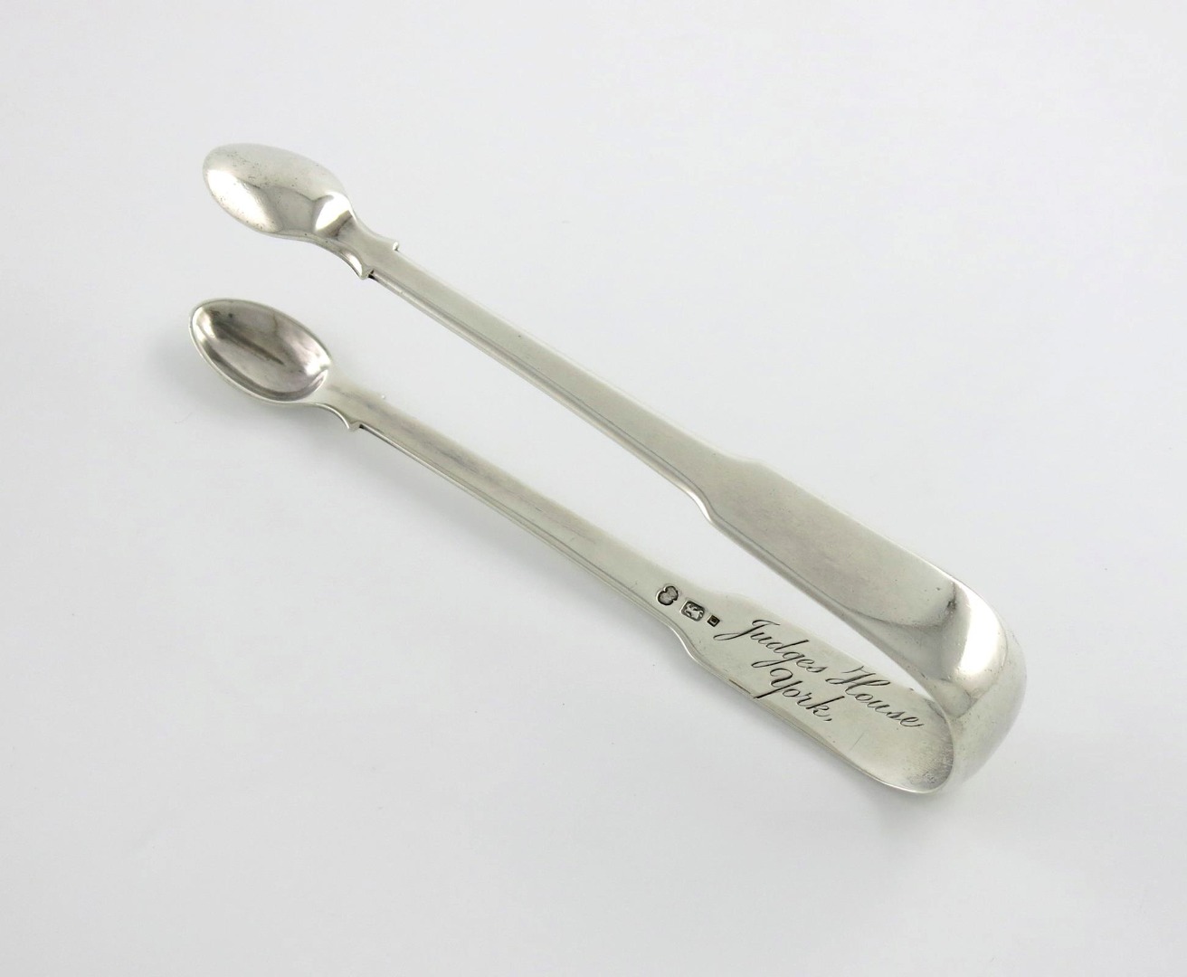 A pair of George III provincial silver Fiddle pattern sugar tongs