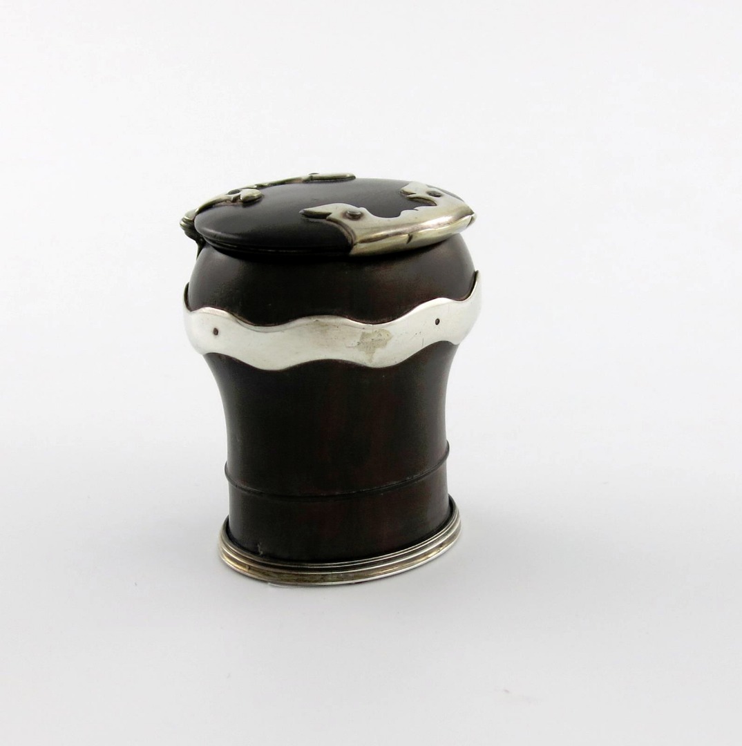 A George II Scottish silver mounted dark hardwood snuff mull