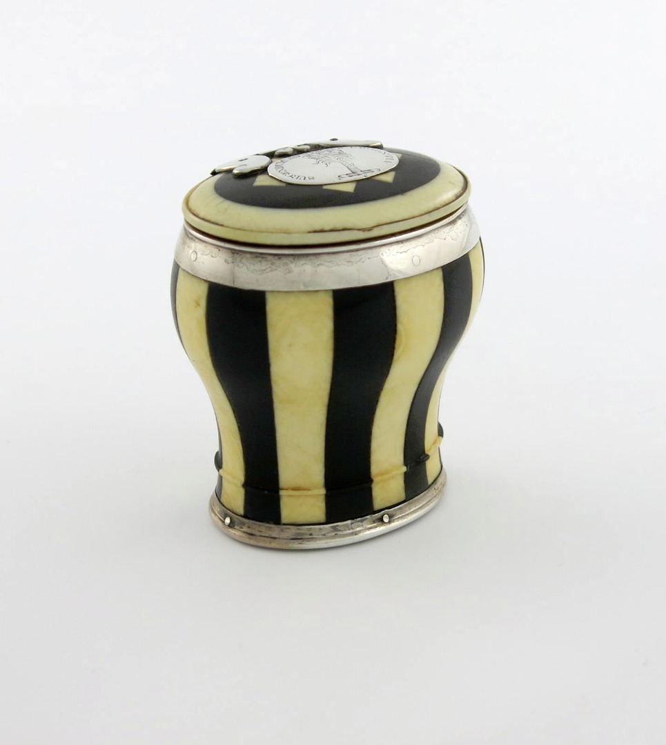 λA George II Scottish silver-mounted ivory and dark hardwood snuff mull,