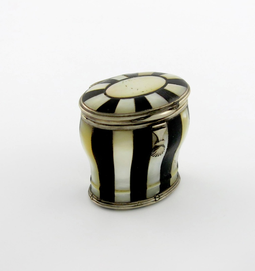 A George II Scottish silver-mounted mother-of-pearl and dark hardwood snuff mull,