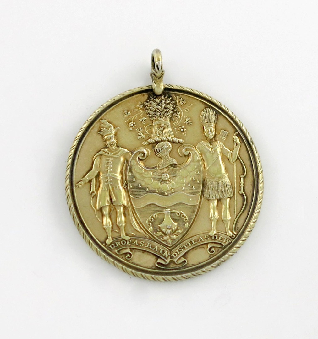 circular form, with the Company's arms, within a rope work border, the reverse inscribed 'Anthony Facer Kemp', with a ring attachment, diameter 4.8cm, approx. weight 1.2oz.