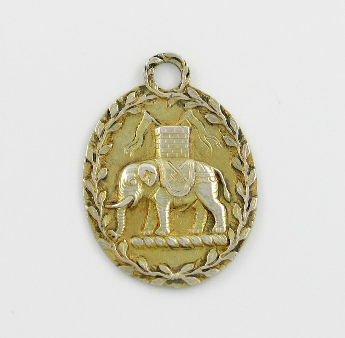 oval form, with the Company's elephant, within a laurel border, the reverse inscribed 'Jas. Looker, Livery, Oct 18th, 1770', length 5.7cm, approx. weight 0.7oz.