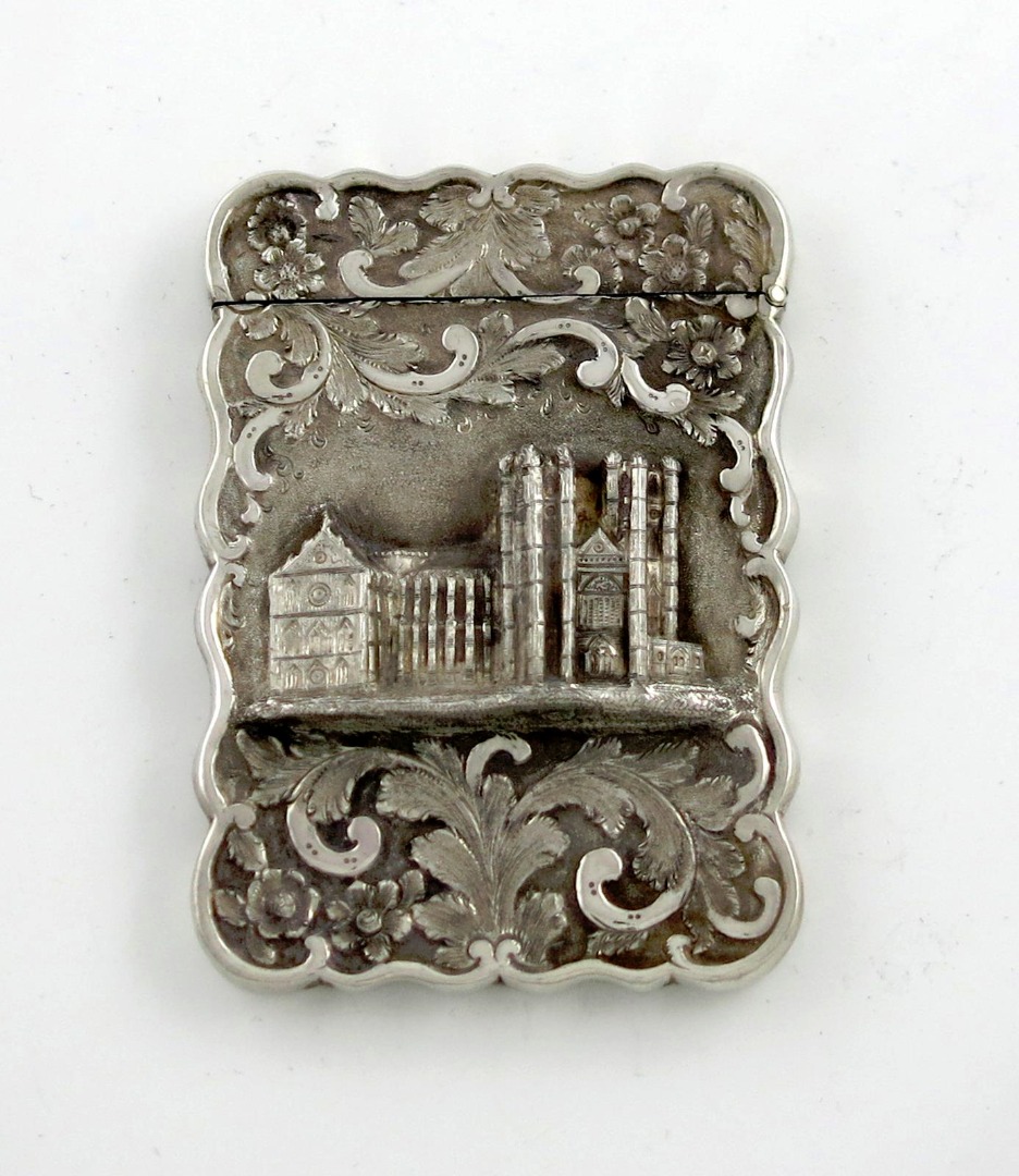 A Victorian silver 'castle-top' card case, Westminster Abbey,