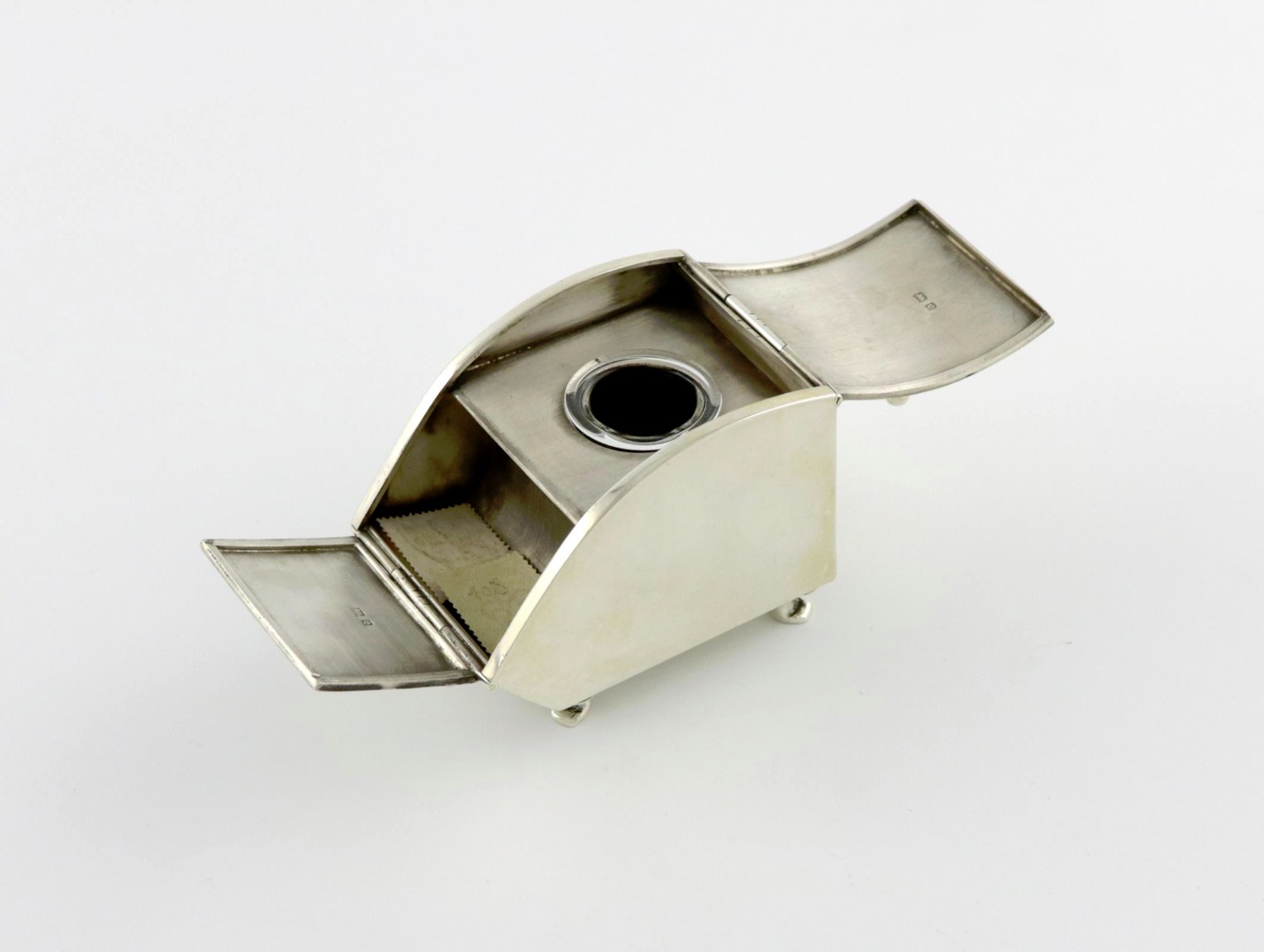 An Edwardian novelty silver coal scuttle inkwell / stamp box