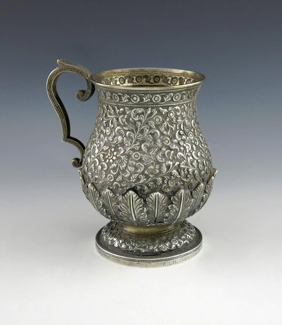 An Indian silver mug,