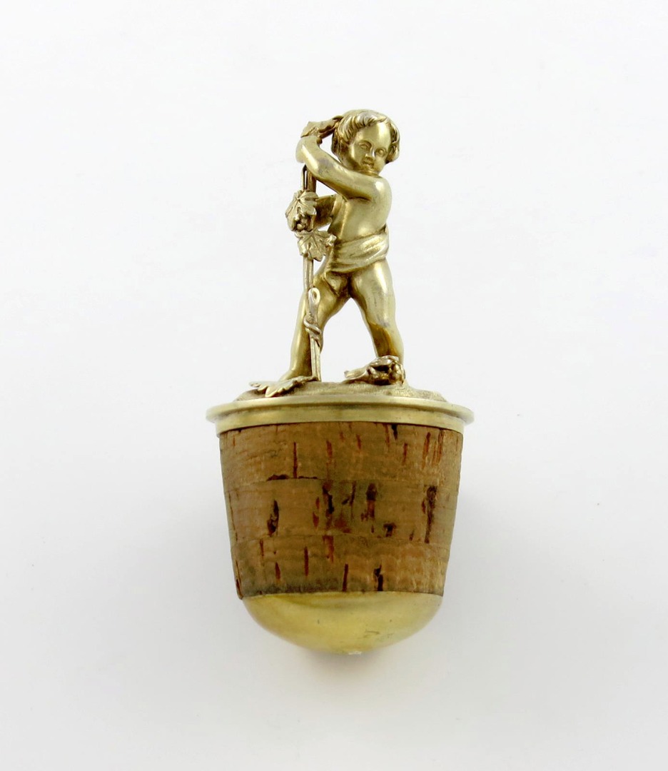 modelled as a standing putto holding a staff with grape-vine decoration, length 10.5cm, approx. weight 3oz.