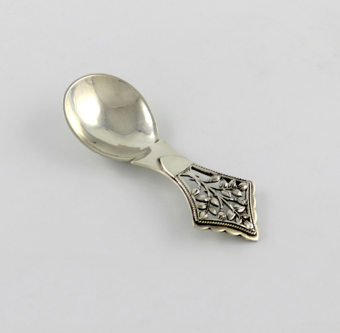 By H. G. Murphy, an Arts and Crafts silver Tree of Life caddy spoon,