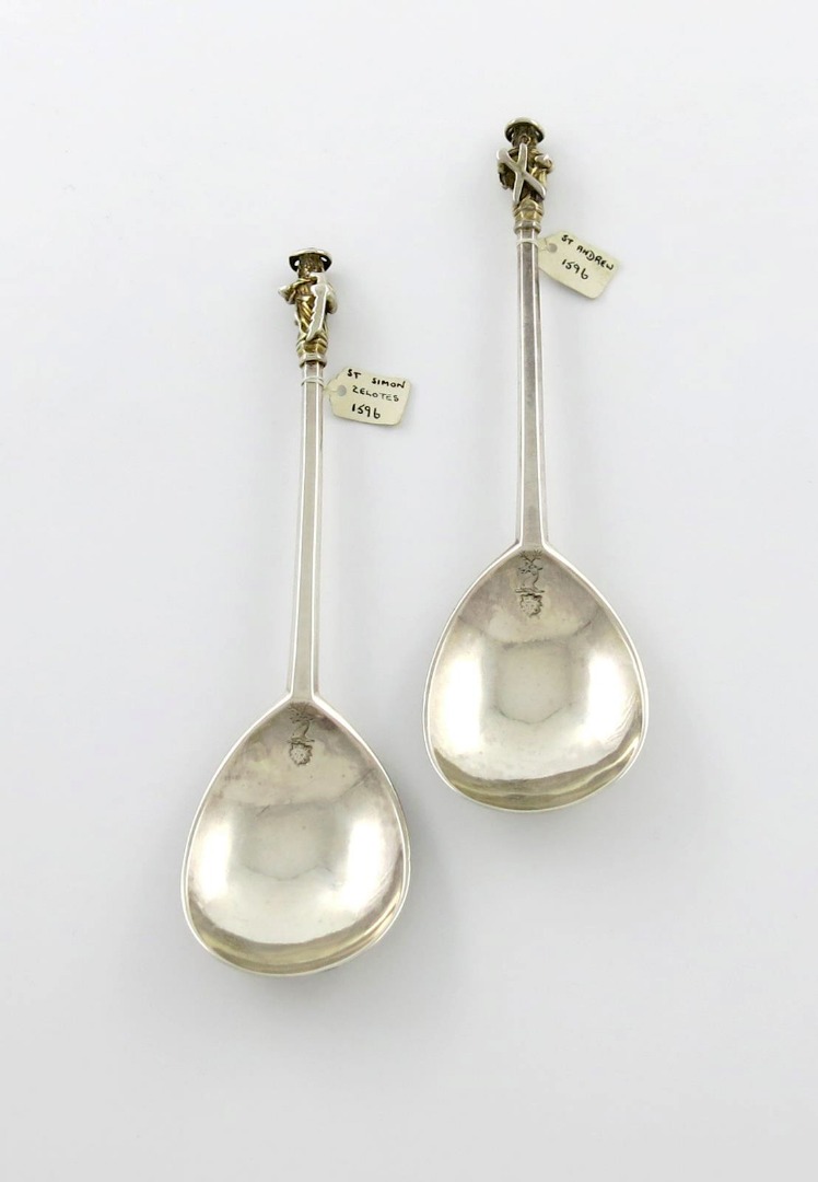 A pair of Elizabeth I silver Apostle spoons, St. Simon Zelotes and St. Andrew,