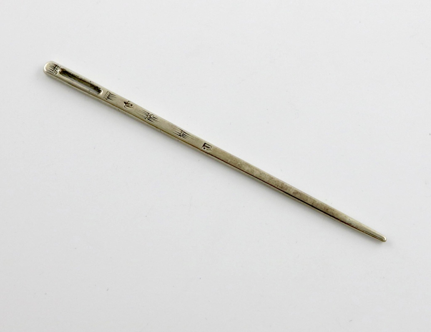 flattened tapering form, engraved decoration, with a slot, length 11cm, approx. weight 0.2oz.