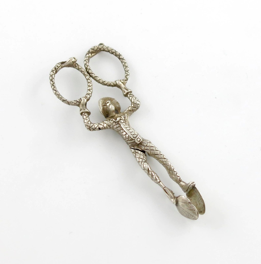 A pair of 19th century French silver harlequin sugar tongs