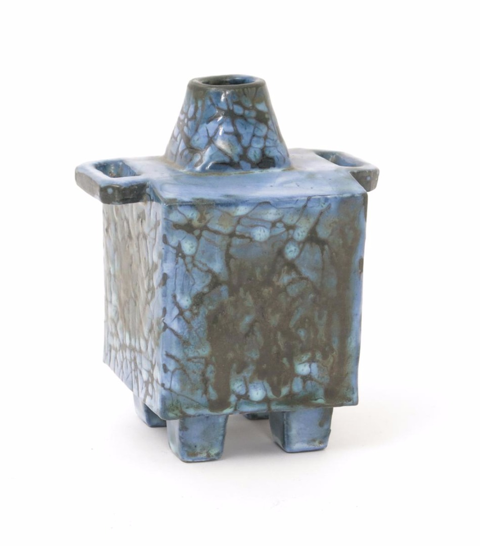 ‡ A rare Troika pottery lidded cube vase designed by Leslie Illsley
