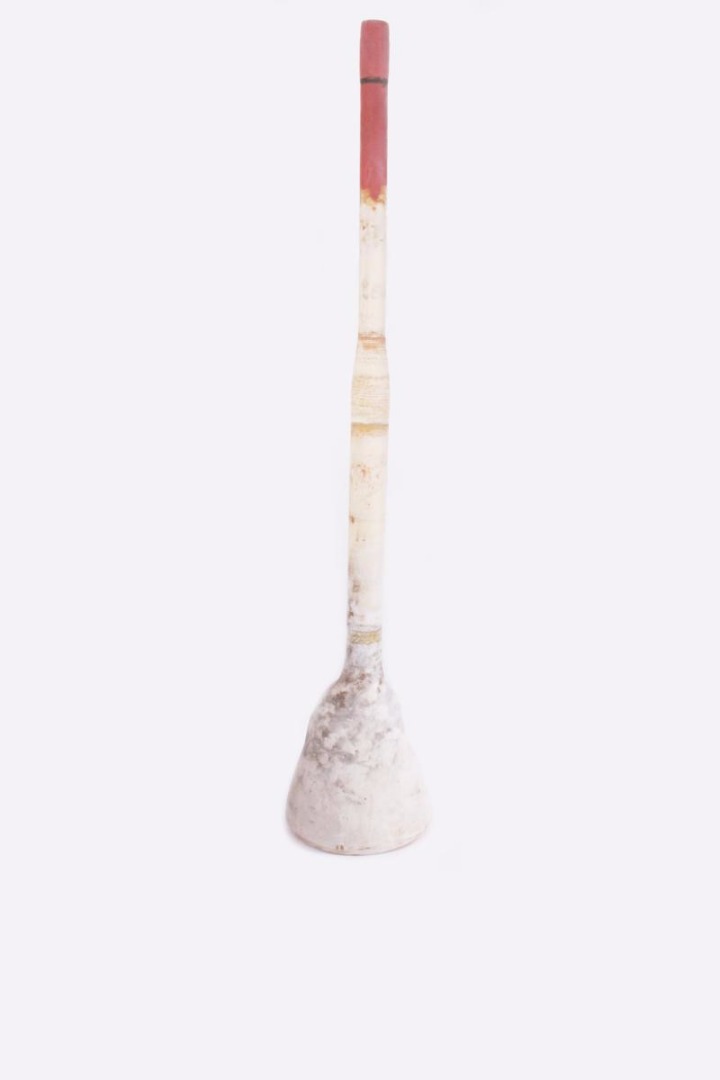 a large Totem form tube vase, on swollen base, constructed in four sections, with white and red bands and black detailing impressed seal mark, 218cm. high